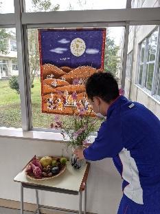 本校でも、コスモスの生徒が栽培したさつまいもをお供えしました。