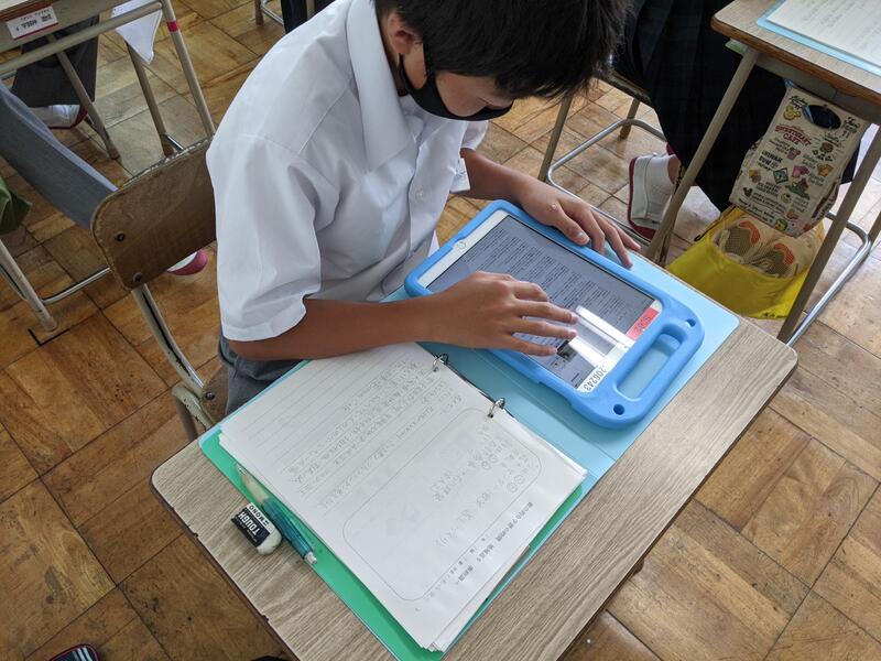 6月18日(金)、1年の総合的な学習の時間で、タブレットを使った地域調べ学習を行いました。