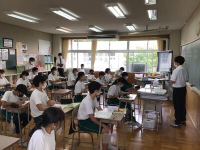 6月18日(金)、新採指導訪問が行われました。今年度新規採用の2名の先生が研究授業を行い、市教委の指導主事の指導を受けました。授業後の研修会では、授業の反省や普段の教員生活の話などをしました。この研修を糧にしてこれからも頑張ってほしいと思います。