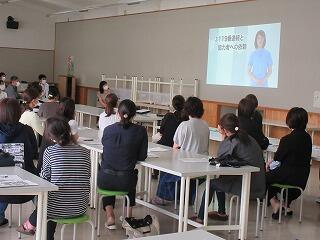 また、1、2学年PTA懇談会の中では、いざというとき命を守るための「救急救命研修会」を実施しました。この救急救命研修会は、毎年行ってきたものですが、昨年度はコロナ禍の中で実施を見送らざるを得なかったPTA研修でした。しかし今年度は、分散型、動画視聴型にし、コロナ禍の中でもできる形を工夫して実施することができました。