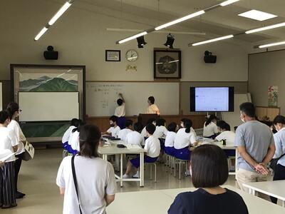 授業参観は、各クラスで担任の授業を行いましたが、生徒の皆さんが真剣に話を聞いて、学習に取り組んでいる様子が見られました。