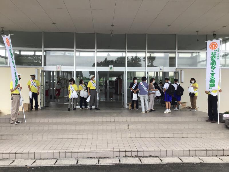 7月13日(水)の朝 登校時に、保護司の方、鹿沼市長様など関係者の皆様がお越しくださり、「社会を明るくする運動」啓発活動が行われました。