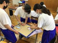 2年生の総合的な学習の時間では、地域ふれあい学習を実施しています。コロナ禍のため、実際に施設を訪問して利用者の方と一緒に活動することは数年間できていませんでした。しかし今年度は、6月に地域の保育園や幼稚園を訪問し、本校の生徒と園児が一緒に活動をします。今日は、当日に使用する遊び道具を制作しました。生徒たちは、どのような活動なら喜んでもらえるか試行錯誤していました。