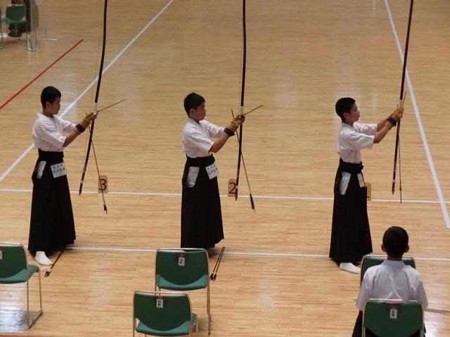 毎年恒例の日本武道館での大会に、本日参加してきました。男女各3チームの計6チームが出場し、ほとんどの生徒が応援にも参加して、大型バスを貸し切って行ってきました。この大会は予選一発勝負の、決勝進出が難しい大会で、6チーム中、2年男子の1チームのみが12射9中という素晴らしい成績を出し、決勝に進出することができました。決勝でも、12射9中の好的中で5位タイにつけ、競射に勝って全国実質4位の優良賞を受賞することができました。