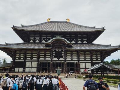 大仏の大きさに圧倒され、たくさんの鹿と楽しそうに戯れていました。
