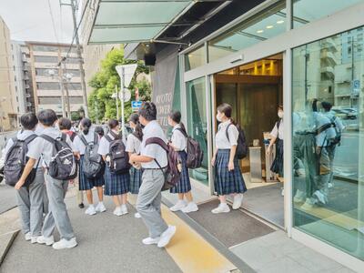 2日目。朝の検温も全員、無事に合格しました。健康面、バッチリです。本日は班別活動です。タクシー会社の朝礼を見学させていただいて、いよいよ出発です!