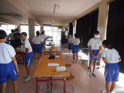 8月末日、ハローワークから講師を招き、次週から始まるマイ・チャレンジ(職場体験学習)に向けて、職業講話をいただきました。2年生は、職場での心構えやビジネス場面で必要な所作、言葉遣いなどを、実際に模擬練習をしながら学びました。そして、相手への細やかな気配りの大切さにも改めて気付かされたと思います。今日学んだことを、ぜひマイ・チャレンジの中で生かしてほしいものです。