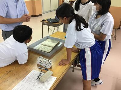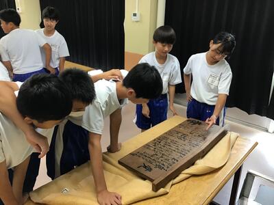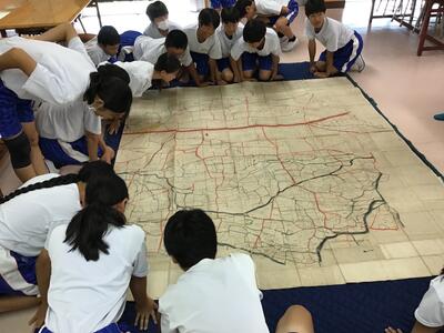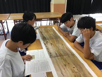 5、6校時の1年生の総合的な学習では、鹿沼市教育委員会文化課のご協力により、「南押原の歴史」を学びました。生徒たちは、特に古地図を興味深く見ていました。