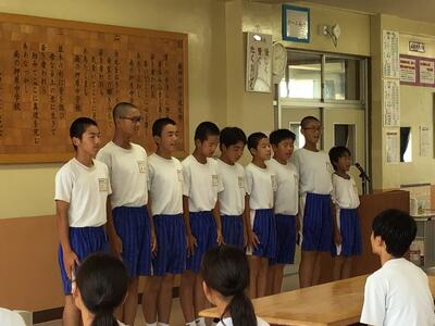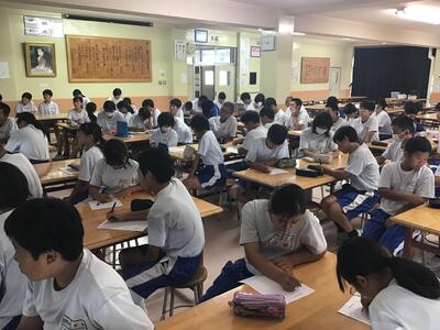 6校時に、表彰式を行い、その後、野球部からの連絡、校長先生からの話、生徒会役員からの連絡などを行いました。安全で充実した夏休みを過ごしてほしいです。