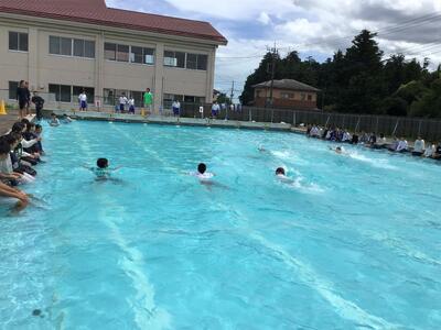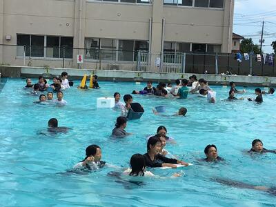 夏休み前最後の授業日に、保健体育の授業で、全校生徒で着衣泳を行いました。夏は水による事故が多いです。服を着ていると、水の中ではどのような状態になるのか、また、そのような危険な場合はどのように対処したらよいかを実践により学ぶことができました。