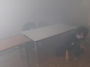 前半はアクティビティとして煙の充満した部屋から脱出する「煙体験」や自衛隊式のロープワークを使った「キーホルダーづくり」などを行い、後半は茂木様が機動パトロール隊を設立した経緯や活動内容をお話しいただきました。また生徒からの質問にたくさんお答えいただきました。
