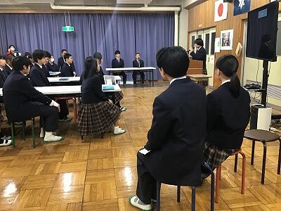 12月22日(月) キャリア教育の一環として職業人講話を実施しました。市内を拠点に活動している「機動パトロール隊」の茂木様をお迎えし講話をいただきました。
