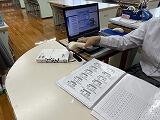 図書委員会の活動も活発で、朝と昼、図書室を開放しています。貸し出しは、バーコードリーダーで行っています。