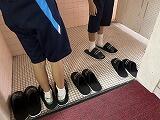 写真のスリッパは、より清潔でより快適な学校環境のためにできることはないかという話し合いの中で発案されました。