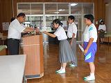 9月18日(水) 「生徒会プレゼンツ・クイズ大会」を行いました。生徒会役員が中心になり、南摩中に関するクイズを縦割り清掃班対抗で解き合いました。南摩中がテーマの二択クイズ・三択クイズの正解数を競い、優勝・準優勝の班は生徒会長が表彰しました。
