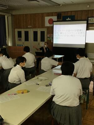 IT support 関係の会社を経営されている大房様に御来校いただき、全校生徒を対象に、貴重なお話をしていただきました。学んだことをしっかりと今後に生かして、パソコンやスマホなどの使い方に気を付けて、家庭で決めたルールを守って使用することができるようにしてほしいと思います。